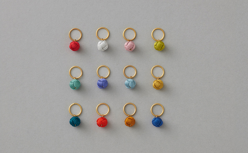 シルクのリングチャームは組みひも職人がつくる小田巻といわれるもの。小田巻は起点と終点が見えないことから”ずっと縁がつづく”という縁起のよいものです。