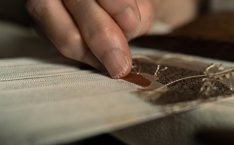 こちらの帯は熟練の織師が一点ずつ丁寧に織り上げた逸品です。古くなったものは裏返してもお使いいただけるので、親子三代に渡り、末永くご愛用頂けます。