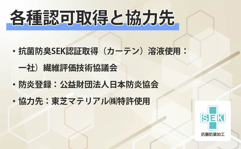 室内の壁クロス、カーペット、カーテン、天井、窓ガラス等に光触媒スプレーを噴霧しても後加工処理の施工において消防庁の認可を取得しており、安全安心にご使用いただけます。(衣類に付着しても安全です)