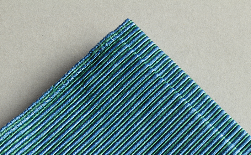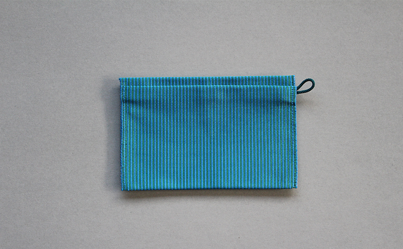 綴織の美しいストライプが特徴の薄型ポーチ。