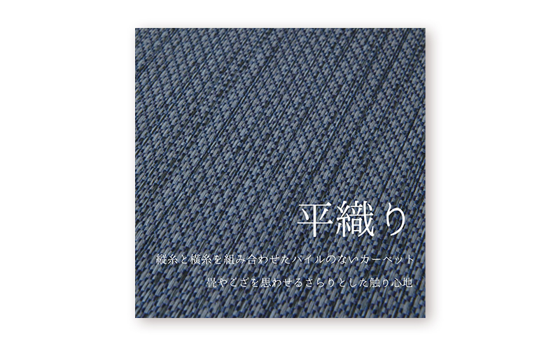 【東リ ファブリックフロア テキスタイルフロア7000 涼織】 経糸(たていと)と緯糸(よこいと)を交互に織り上げる古来伝統の平織りをモダンにアレンジした、 さらりとした清涼感のあるカーペットです。 和風イメージのお部屋からモダンな空間まで、さまざまなシーンでお使いいただけます。 製造工程(目止め・バッキング・在庫)につきましてはすべて日野町内で行っております。 ※画像はイメージです。 ※実際の色と異なる場合がございますのでご注意ください。 ※平織りの特性上、端部の繊維はホツれる事があります。ホツれた時は引っ張らず、ハサミでカットしてください。