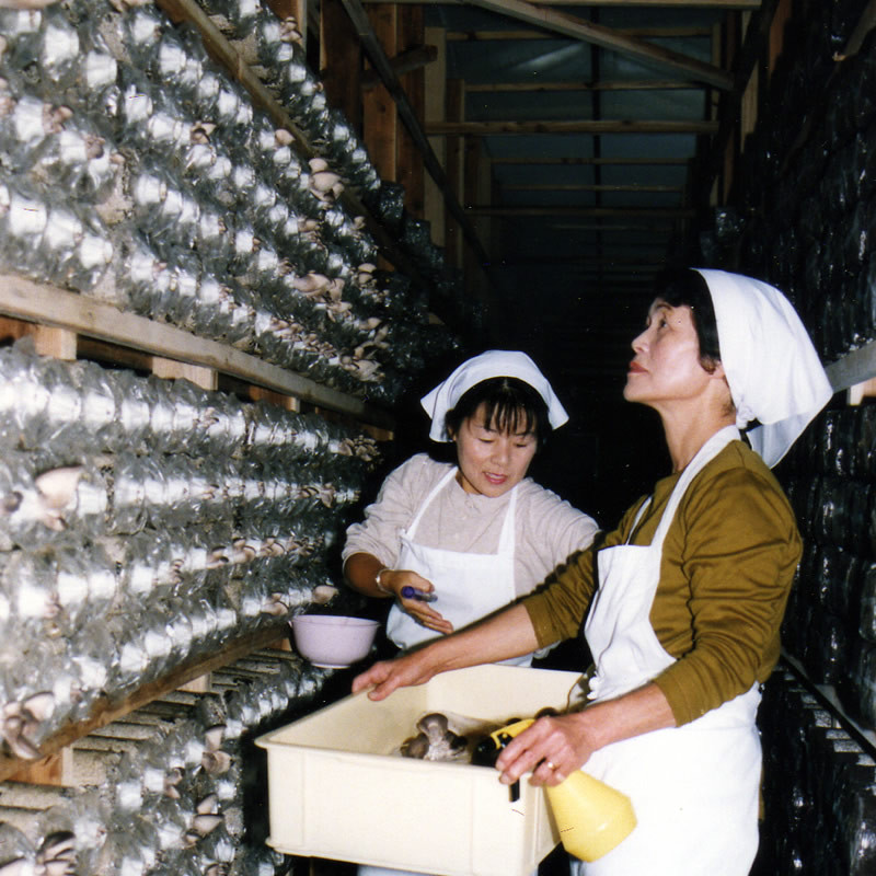 【私たちが心を込めておいしいきのこ作りに励んでいます】
