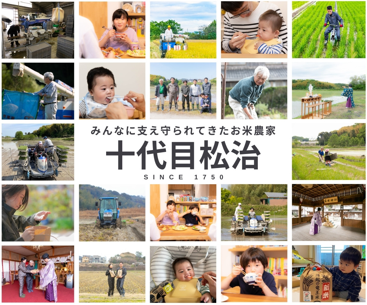 私たち十代目松治(まつじ)は1750年から、江戸時代から滋賀県竜王町でお米作りにたずさわっています。