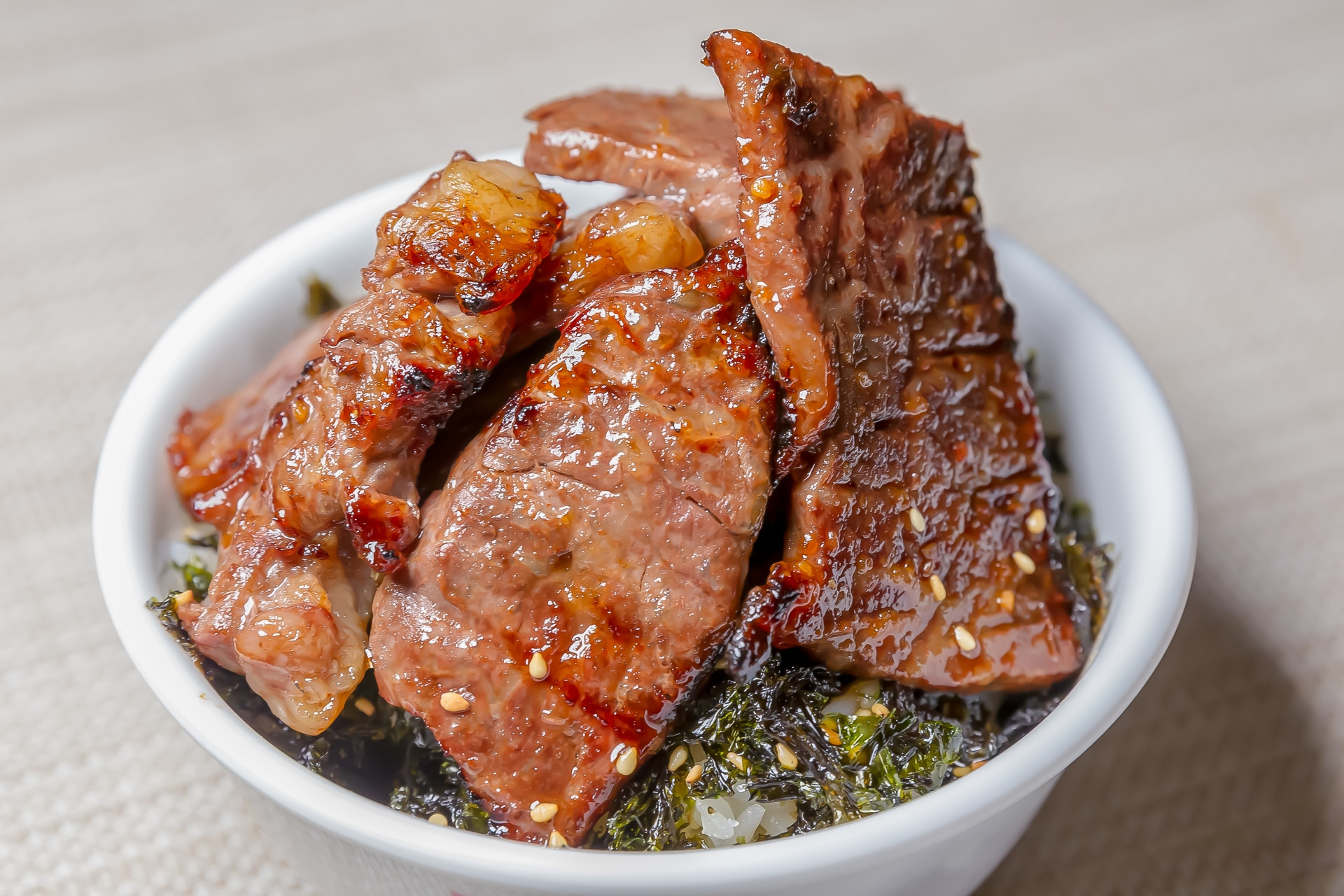 A5ランク以上の近江牛を贅沢に味付焼肉にしました。