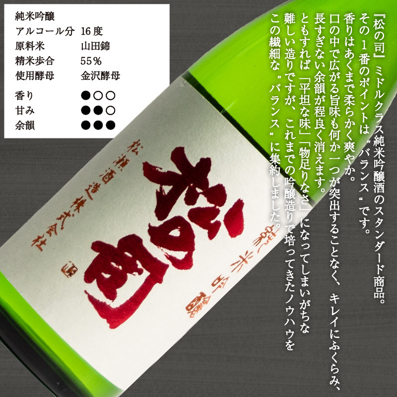 『松の司』ミドルクラス純米吟醸酒のスタンダード商品。その1番のポイントは“バランス”です。