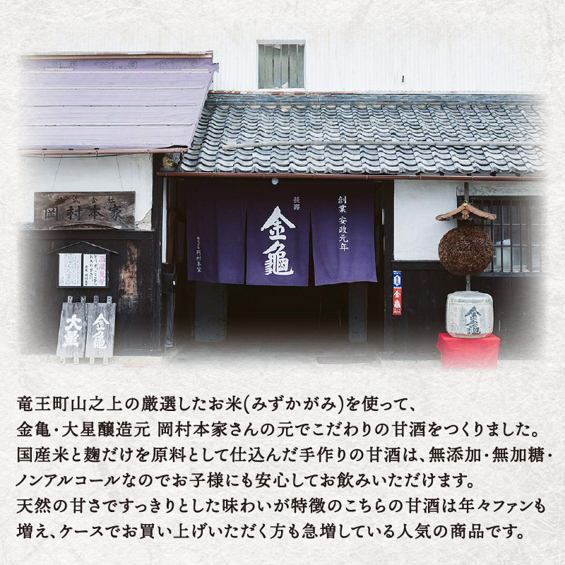 天然の甘さですっきりとした味わいが特徴のこちらの甘酒は年々ファンも増え、ケースでお買い上げいただく方も急増している人気の商品です。
