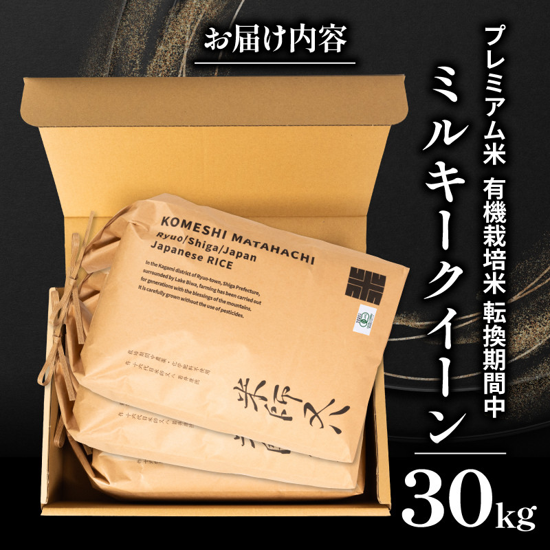 米食味分析鑑定コンクール国際大会 金賞受賞農家! 【 プレミアム米 】 新米 ミルキークイーン 10kg × 3袋 有機JAS認証米 転換期間中 ( 令和7年産 十六代目米師又八 謹製 ブランド 米 rice 精米 白米 ご飯 内祝い もちもち 国産 送料無料 滋賀県 竜王 ふるさと納税 )