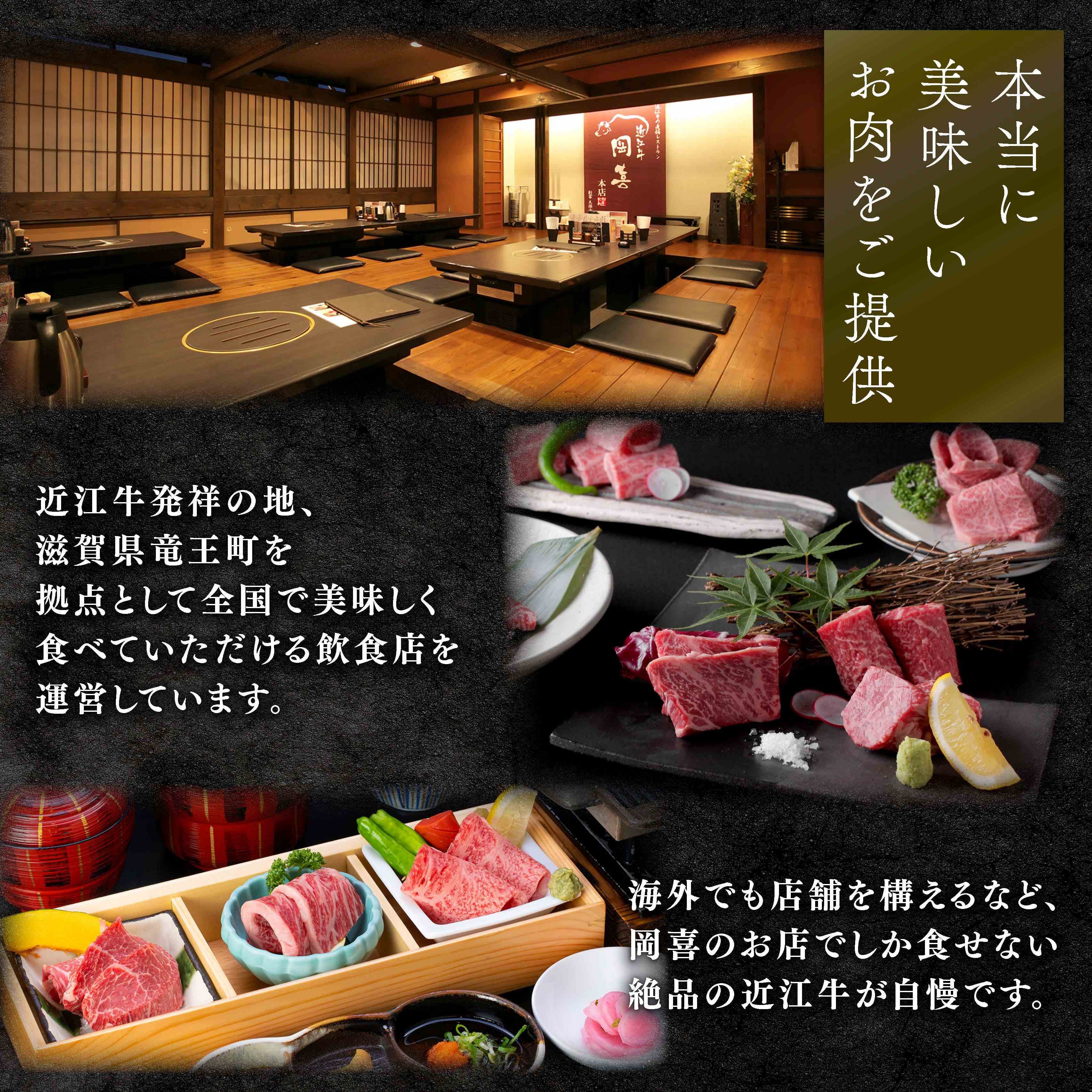 神戸牛、松阪牛に並ぶ日本三大和牛のひとつ近江牛。 近江牛岡喜の厳選した近江牛は、それぞれの部位でそれぞれの持ち味があり、どれもうまみ抜群の美味しさ。 牛肉で王様のサーロインを贅沢に1枚200gでカットしました。 上質な霜降りと濃厚で芳醇な「近江牛」の旨みを存分にご堪能くださいませ。 竜王町ではその他に、すき焼き、しゃぶしゃぶ、焼肉、ハンバーグ、肩ロース、カルビ、サーロイン、ステーキ、ブロック、フィレ、ヒレ、モモ、ブリスケ、ミスジ、ランプ、三角、さんかく、赤身、スライス、レバー、ホルモン、牛脂、テール、牛骨、サイコロステーキ、霜降り、希少部位、すきしゃぶ、切落し、切り落とし、焼き肉、食べ比べ、メンチカツ、コロッケ、牛丼用、しぐれ煮、牛すじ、カレー、シチュー、定期便、グルメ、A3、A4、A5、サイズ、小分け、厚切り、といった様々な近江牛のバリエーションを揃えております。