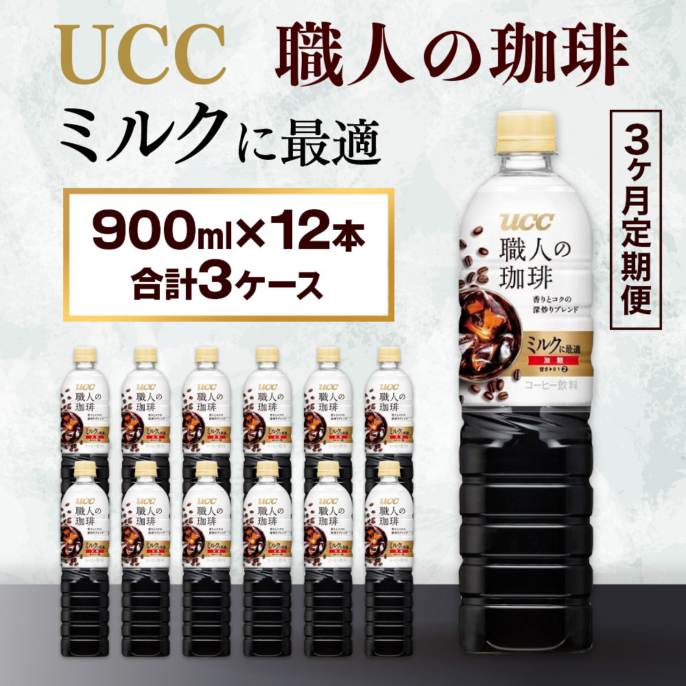 挽きたての香りとコク。コーヒーと甘さのバランスが、ミルクと割っておいしい。 【3ヶ月定期便】【UCC 職人の珈琲 ミルクに最適 ボトルコーヒー 900ml×12本 合計3ケース】 UCC ボトル コーヒー ペットボトル AB19