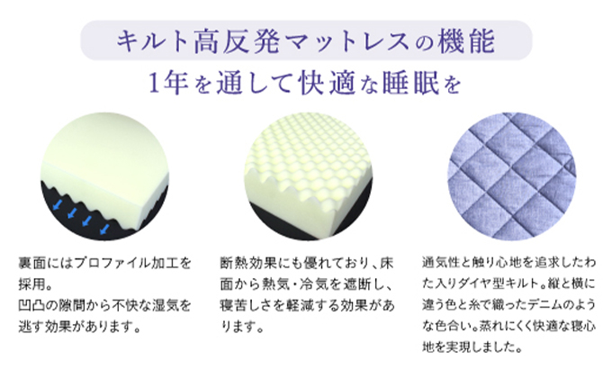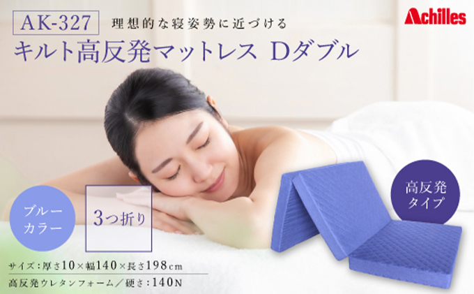 キルト 高反発 マットレス D(ダブル)ブルー 3つ折りタイプ