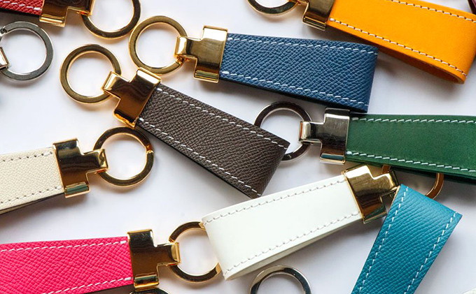 性別を問わないユニセックスなデザインのレザーキーリング。