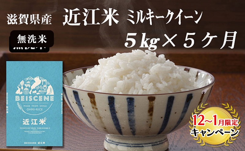 【12月~1月までの限定寄附額】 【定期便】令和7年産新米 滋賀県豊郷町産 近江米 ミルキークイーン(無洗米)5kg×5ヶ月 お米 白米 ごはん ライス 主食 炭水化物 おにぎり CP1201