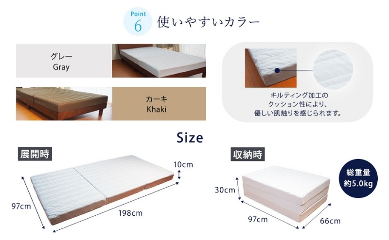・収納、お手入れのしやすさにこだわった3つ折りタイプ:手軽に収納できて女性でも折りたたみしやすいサイズ。製品重量約5.0kgで持ち運び・収納ラクラク!お手入れは広げて陰干し