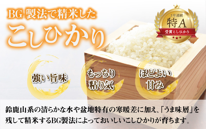 鈴鹿山系の清らかな水で育てられた「こしひかり」は強い旨みと粘りが特徴です。