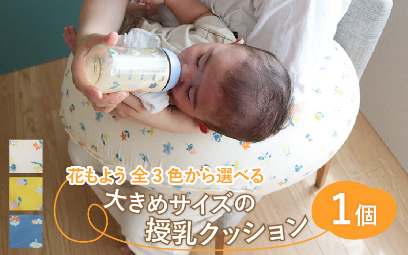 カバーもクッションも洗濯OK!三日月型の抱き枕にもなる大きめの授乳クッション! 抱き枕にも!大きめサイズの授乳クッション 花もよう 全3色(アイボリー・イエロー・ネイビー)[B-01108]