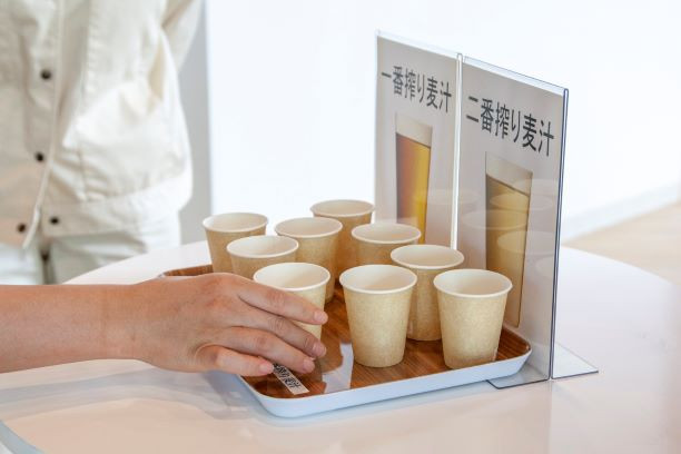 ツアーでは、見学だけでなく、原料の麦芽やホップに触れたり、一番搾り麦汁と二番搾り麦汁を飲み比べたりすることもできます。