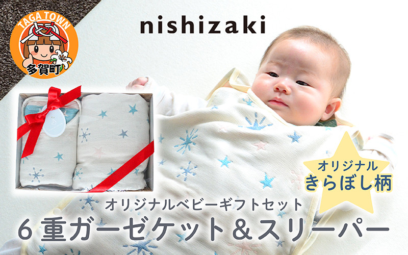 お出かけ時のベビーカーやチャイルドシートにも!6重ガーゼケット&スリーパー! 【オリジナルベビーギフトセット】6重ガーゼケット&スリーパー 全2デザイン(きらぼし)[H-01103_01]
