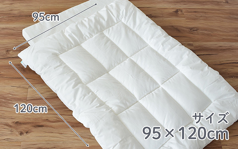 生地はお肌に優しい安心の綿100%。サイズは95×120cmで一般的なベビー布団のサイズです。