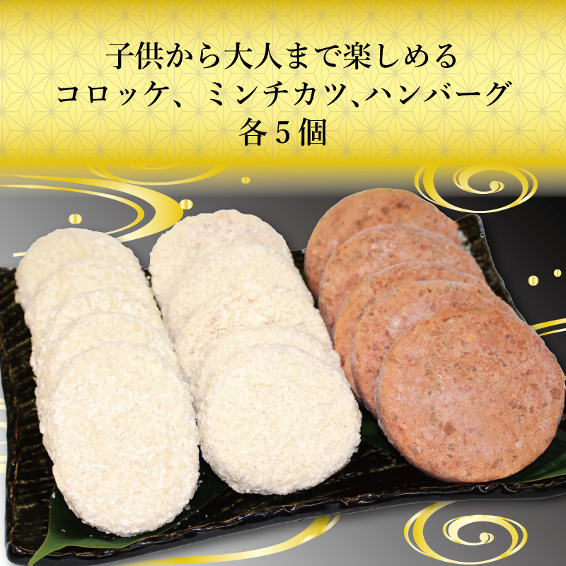 肉汁たっぷりのずっしりとしたハンバーグと肉感が楽しめるミンチカツとホクホクのコロッケはご飯やお弁当のおかずにぴったりです♪