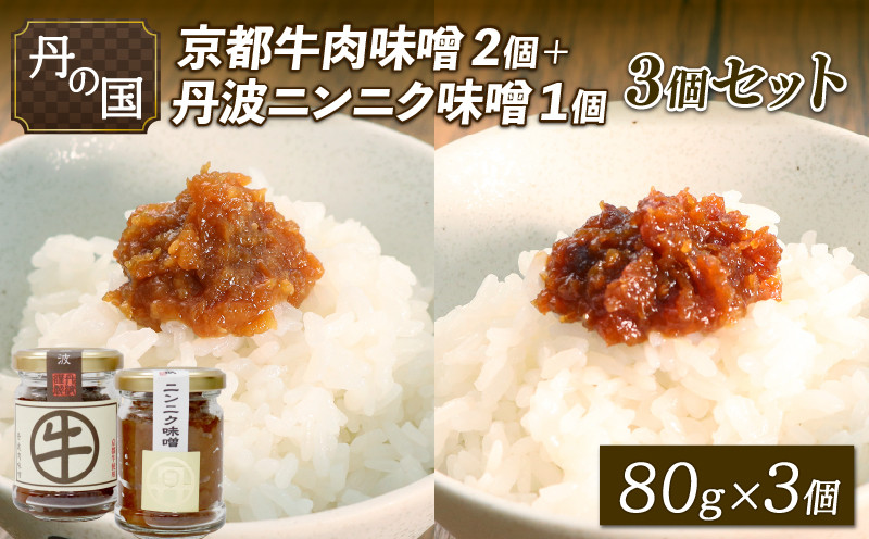 丹の国 京都牛肉味噌2個・ニンニク味噌1個 3個セットです。