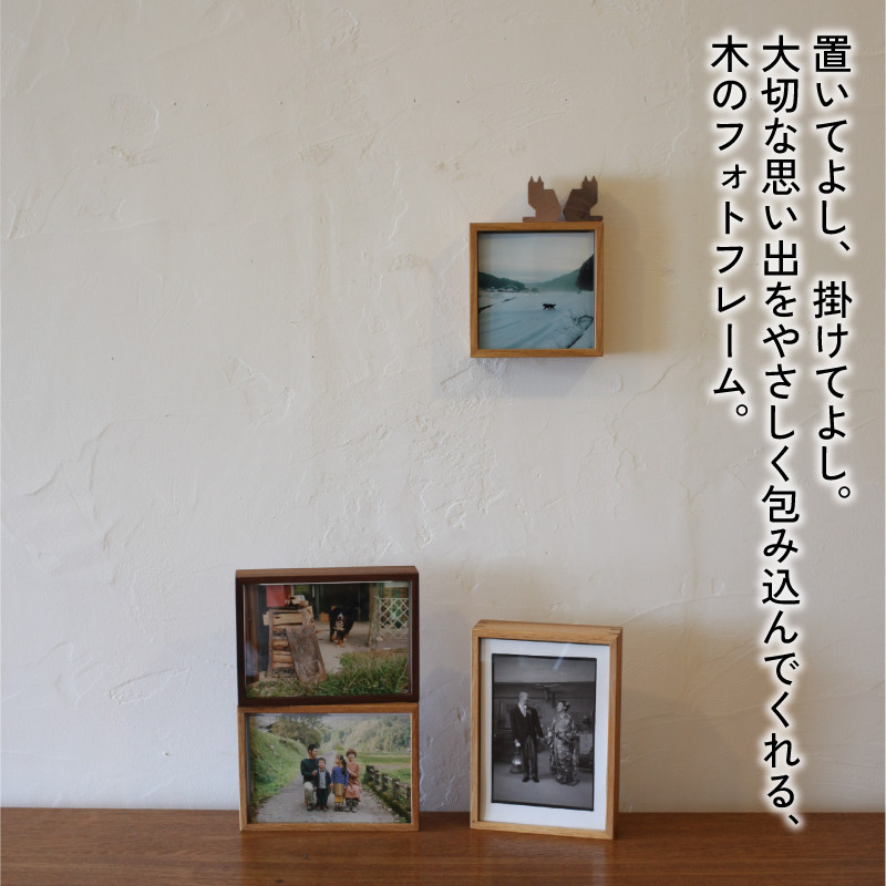 京丹波産ヒノキで作る写真たて。正方形のデザイン性がお部屋のインテリアとしても最適