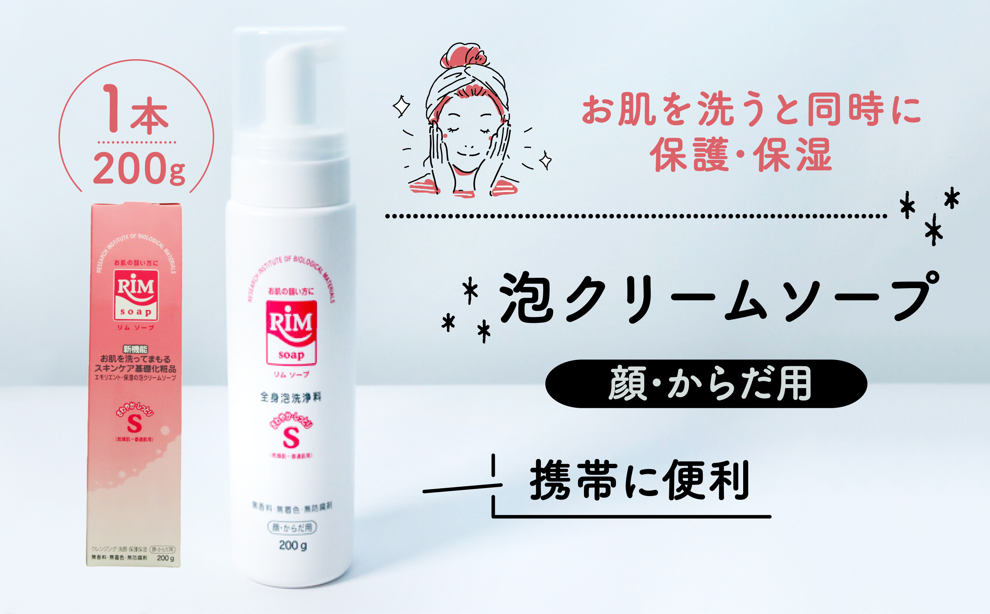 美容から健康美肌へ!肌の洗浄と保護に特化した新機能スキンケア基礎化粧品。 洗顔フォーム 200g スキンケア ( 泡 美容 RIMソープ ハンディタイプ 赤ちゃん 子供 子ども ベイビー ベビー ベビー用品 子育て 保湿 肌 スキンケア ボディソープ 石鹸 せっけん 無香料 化粧品 京都 精華町