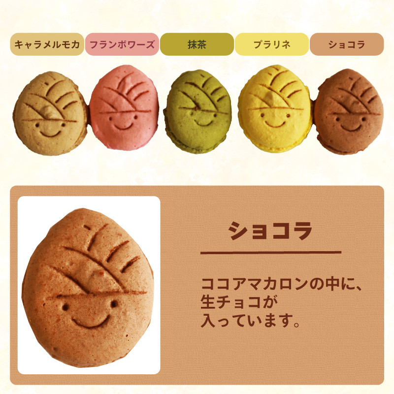 ピエスモンテ・ヒロのマカロンは愛らしくてどこか頼りがいのある「タケノコ戦隊マカロンジャー」。1つ1つ手作りで作られています。5つセットでさまざまな食感と味わいを楽しんでみませんか?