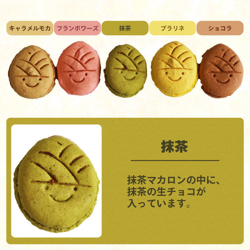 ピエスモンテ・ヒロのマカロンは愛らしくてどこか頼りがいのある「タケノコ戦隊マカロンジャー」。1つ1つ手作りで作られています。5つセットでさまざまな食感と味わいを楽しんでみませんか?