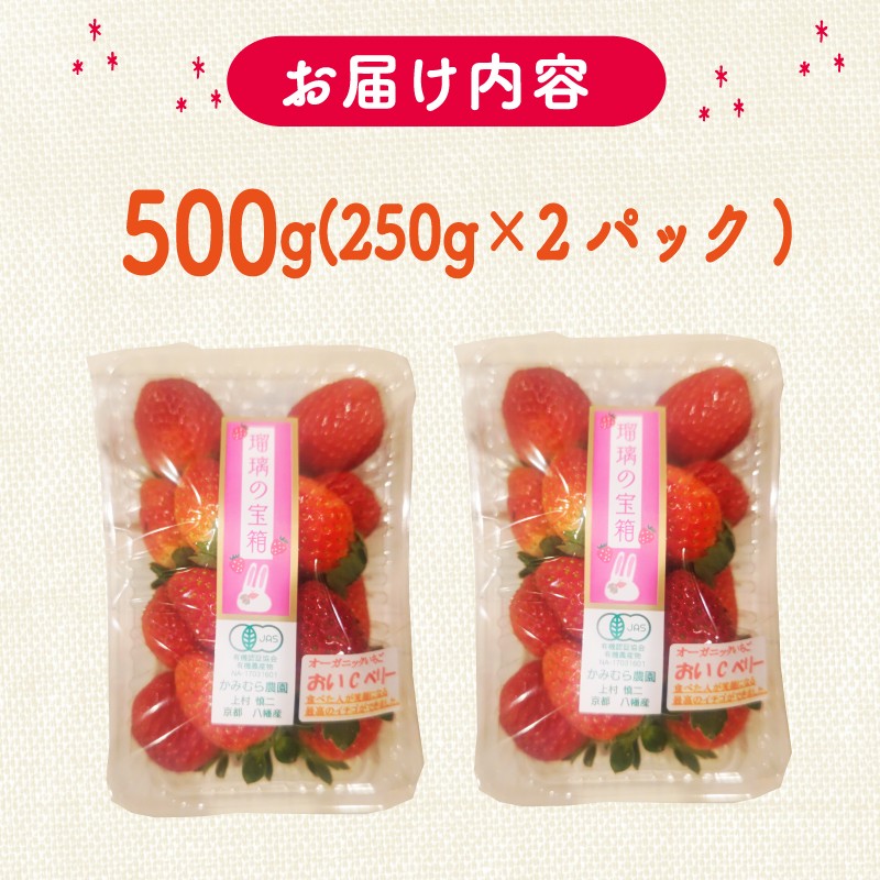 2026年3~5月 発送 いちご 500g 瑠璃の宝箱 250g 2パック 有機JAS 植物系有機肥料のみ イチゴ 苺 オーガニックイチゴ ストロベリー ベリー フルーツ 果物 甘い 国産 ブランド 産地 直送 フレッシュ 人気 おすすめ ふるさと納税 京都 八幡 八幡市 かみむら農園