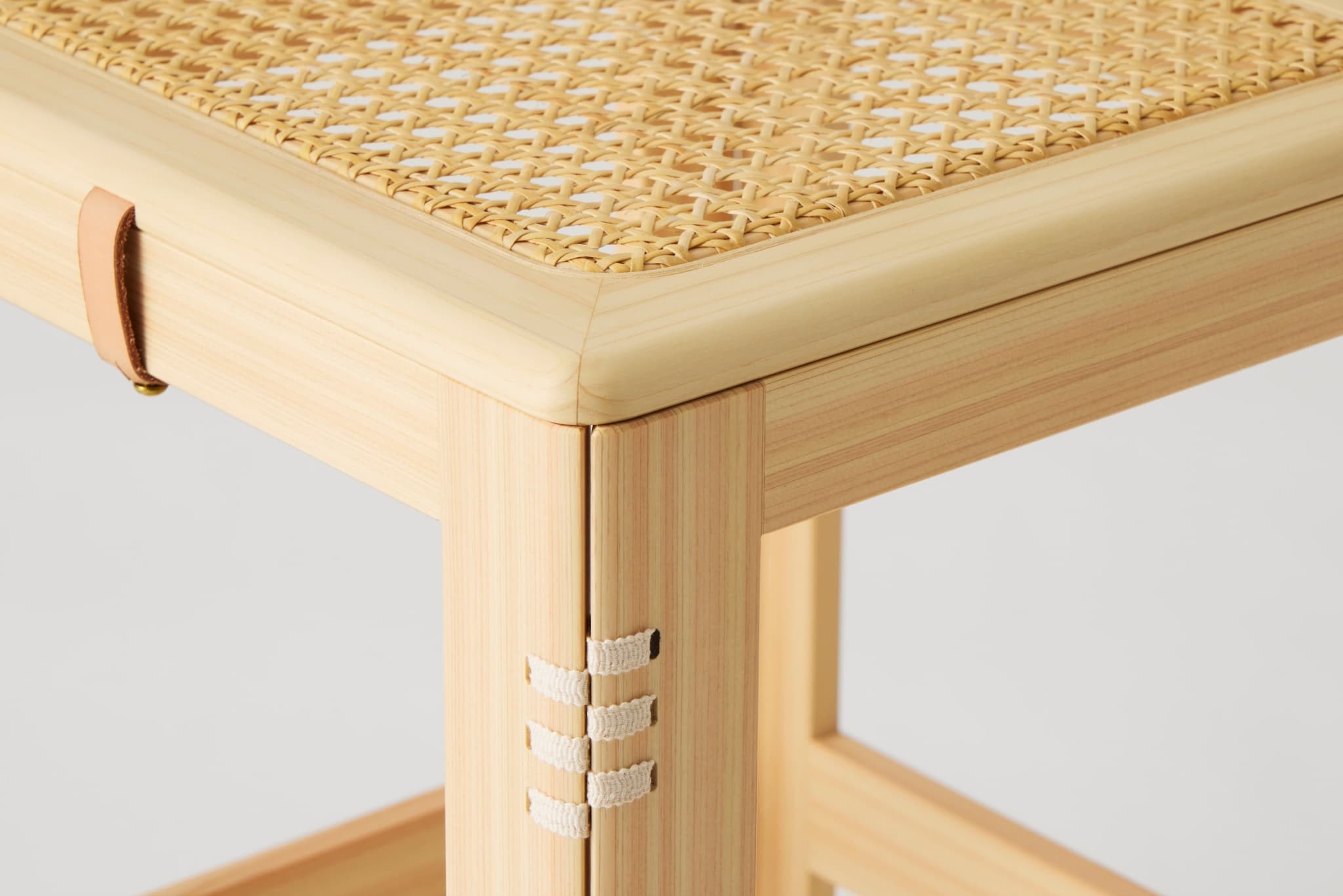 伝統的な木組の技法を用いて、細く薄い材を強固に組むことで、木製ながら非常に軽量で持ち運びにも優れます。