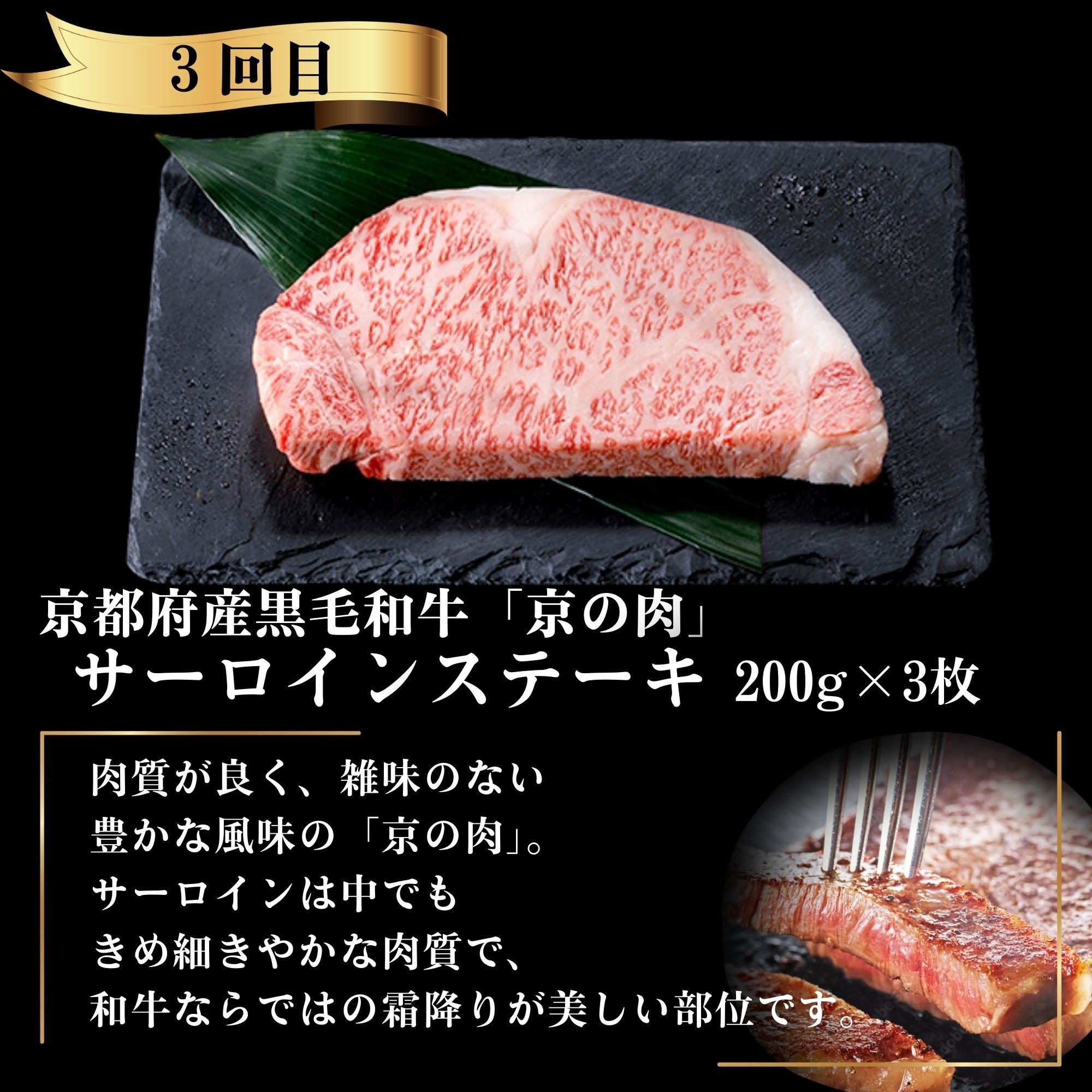 【3回目】京都府産黒毛和牛 京の肉 サーロインステーキ 600g (200g×3枚セット) (JA全農京都)