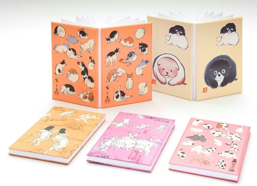 江戸の浮世絵師・歌川広重が描き、天保年間に名古屋の永楽屋から出版された版本「浮世画譜」から、かわいらしい猫を表紙に仕立てました。
