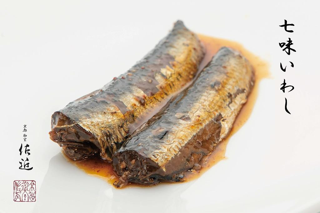 いわし七味:いわし(国産)、砂糖、醤油、醸造調味料、酵母エキス、生姜、七味唐辛子、食塩/増粘剤(加工でんぷん)、(一部に小麦・ごま・大豆を含む)