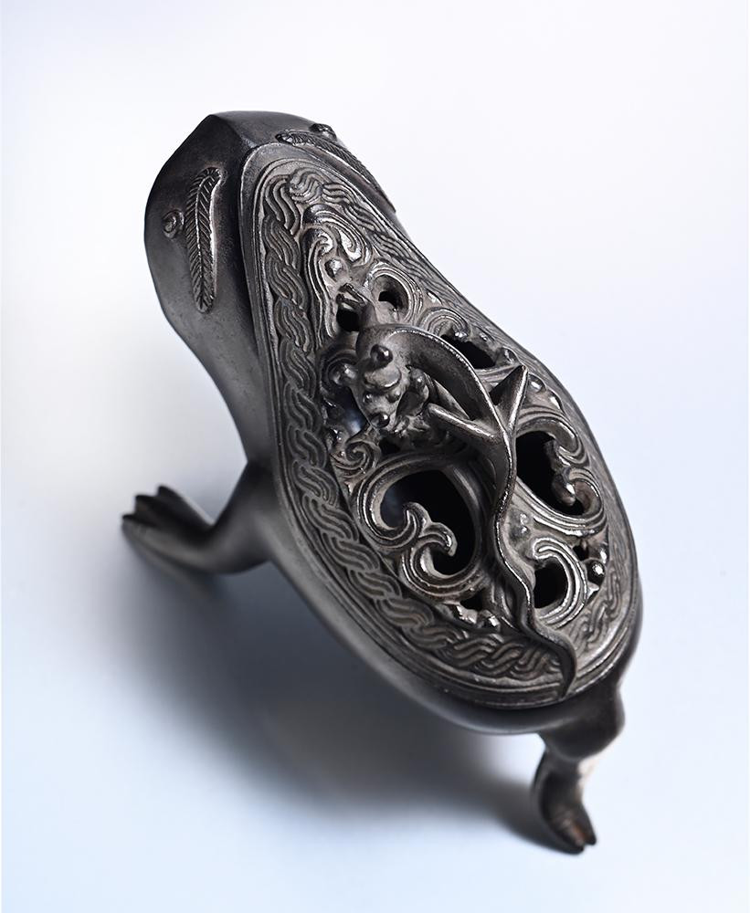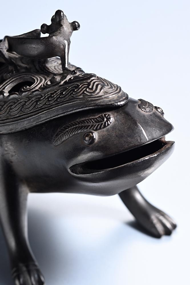 青銅製で手のひらに乗る大きさの香炉「三足の蛙」。