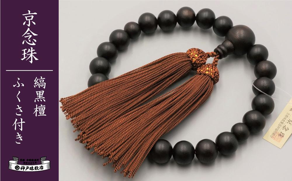 【神戸珠数店】〈京念珠〉艶消し縞黒檀 男性用数珠【ふくさ付き…