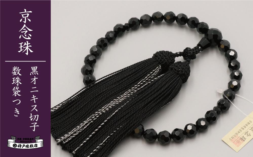 【神戸珠数店】〈京念珠〉黒オニキス切子 女性用数珠 【数珠袋…30,000 円 ジュエリーのようにカットし、上品に輝く黒オニキスを熟練の京念珠職人が仕立てた逸品 - 常温便