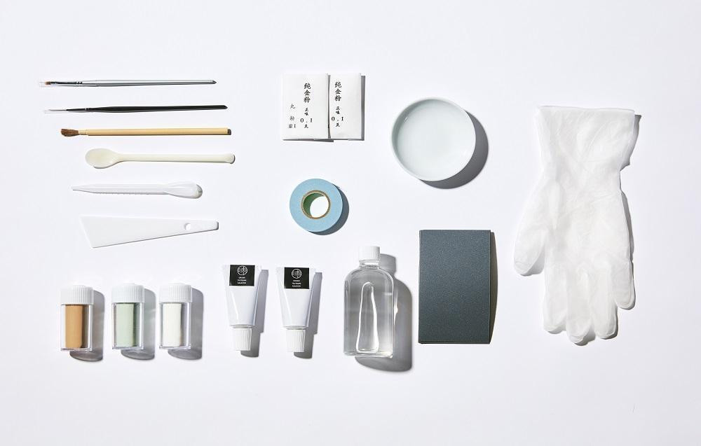そんな方には京都で110余年、漆の原材料店として文化財修復や国内外の漆芸作家らに漆や漆工材料を供給する堤淺吉漆店が、プロや金継ぎ教室などから自宅用体験キットとして「あったらうれしい」便利な情報を集約したコンパクトでオシャレなセット「金継ぎコフレ」をご提案します。