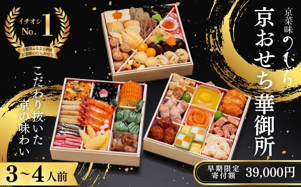 チョイス公式ポイント交換対象 新年の始まりに福を招く!厳選素材と熟練の技が織りなす伝統的な京の味わい 【早割9月末まで】おせち 華御所 (三段重・3~4人前)《2027年 数量限定》【京菜味 のむら】|京都 おせち 人気 和風 正月[ 京都 おせち おせち料理 お節 京料理 人気 おすすめ 2027 正月 お祝い グルメ ギフト ご自宅用 冷凍 お取り寄せ 通販 送料無料 ふるさと納税 ]