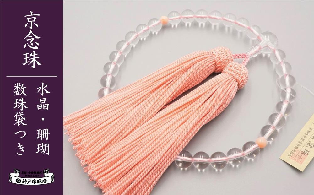 この自治体のポイントについてチョイス公式ポイント交換対象 女性に人気の水晶に希少な珊瑚を使用し熟練の京念珠職人が仕立てた逸品 【神戸珠数店】〈京念珠〉 水晶 珊瑚入り 女性用数珠【数珠袋付き】