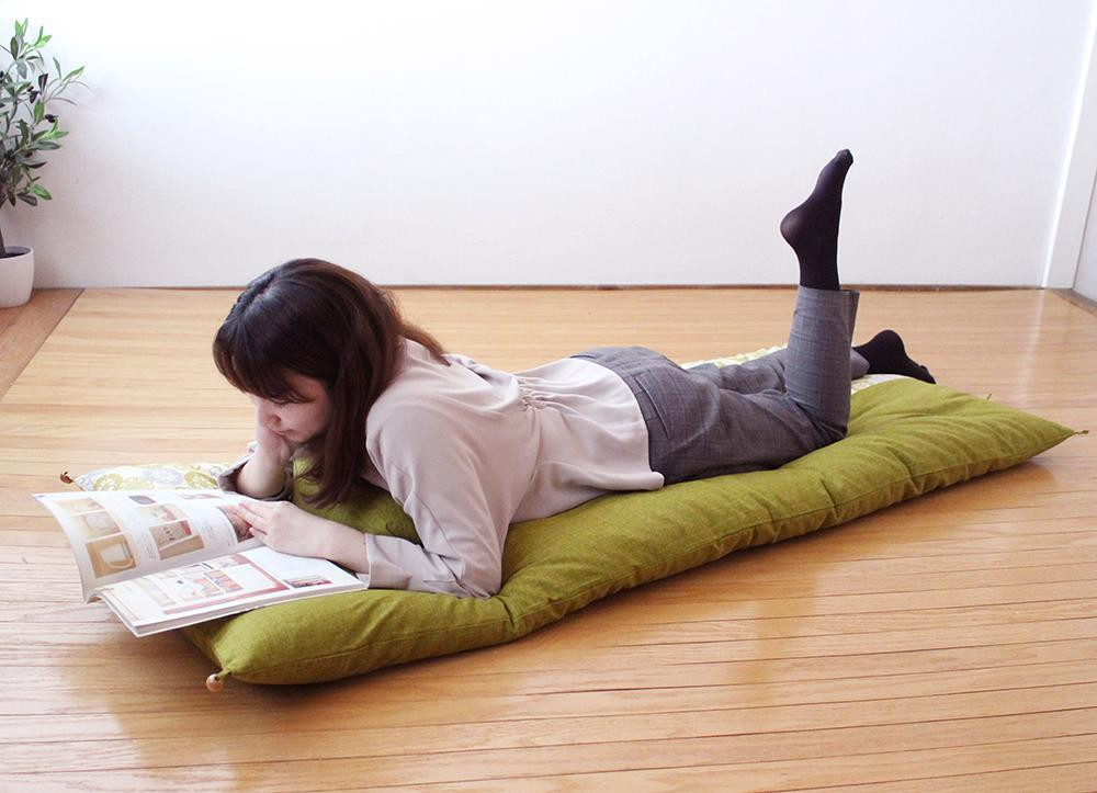 座布団約3枚分の大きさがもたらす寝心地を、もう少し大きくゆったりとしたサイズでゴロンとしたいとのお声から生まれたゆったりサイズ。