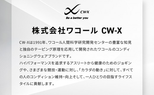 CW-Xは1991年、ワコール人間科学研究開発センターの豊富な知見と独自のテーピング原理を応用して開発されたワコールのコンディショニングウェアブランドです。