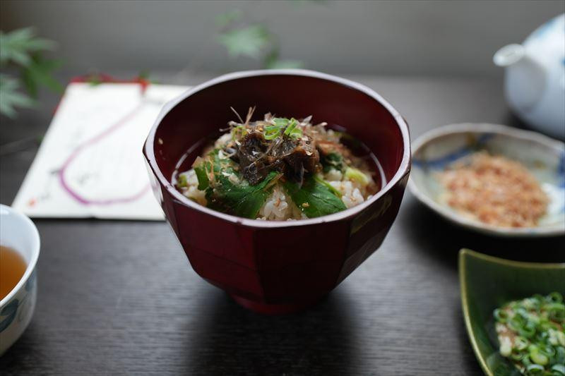 温かいおだしと三つ葉、ねぎ、あられ等のトッピングをしてお茶漬けとしてお召し上がりください。