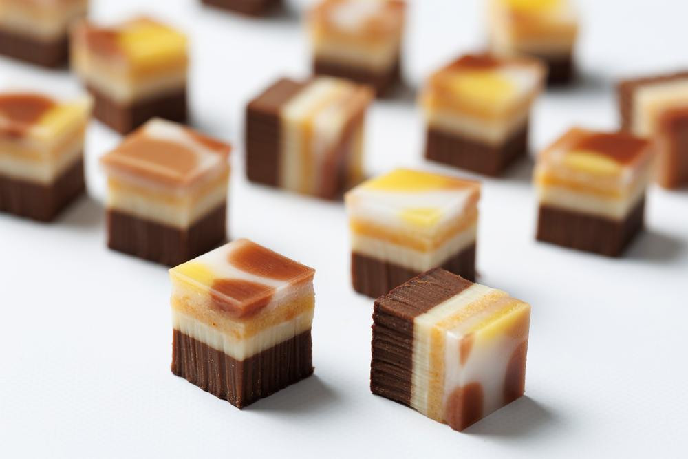 生チョコレートは、全て卵や乳製品などを使用しない植物性。表面のシュガーペーストには天然由来の着色料を使用し、フレーバーを連想させる独自の色の表現行っています。