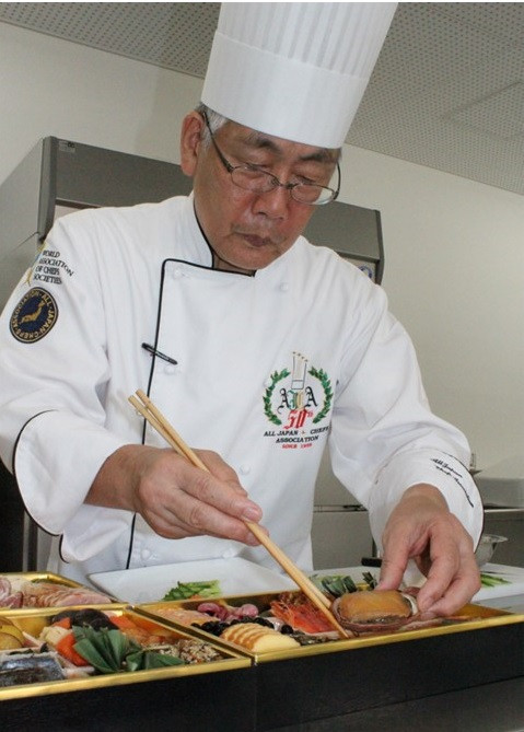 フランスの三ツ星有名レストラン(当時)などで研鑽を積み、1986年帰国。京都有名ホテル開業時に入社、和食・洋食の総料理長として活躍。京都府知事より最高の技術を発揮し産業発展に貢献している者に表彰される「京都 現代の名工」を受賞しました。