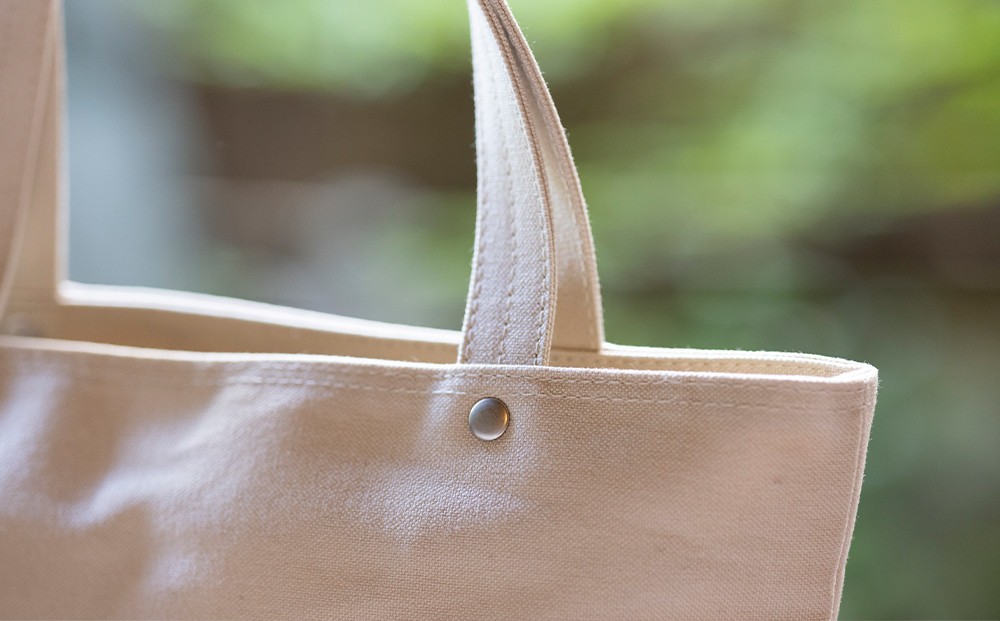 キャンバス地と呼ばれる帆布を使った、ちょっとしたお出掛けに便利な手提げバッグ