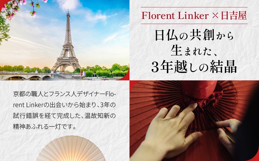 「WAGASA Light」は日吉屋が京都市の支援事業「Inspiration of Kyoto」に参加し、フランス人デザイナーFlorent Linker氏とのコラボレーションがきっかけで誕生しました。