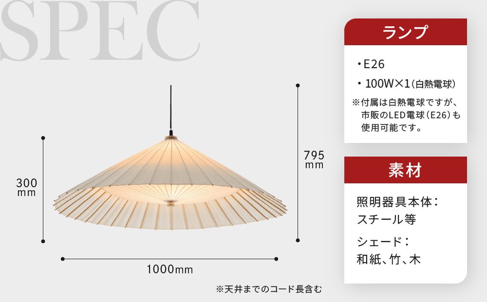 | 容量 | 1セット ランプシェード、灯具、 100W E26 普通電球×1、取扱説明書 φ1000mm×H300mm カラー:(White×White) ■日吉屋について 日吉屋は江戸時代後期創業、現存する唯一の「京和傘」の技法を継承する工房です。創業より160年以上にわたり伝統の技を受け継ぎ、各種和傘の制作や、修復を行っています。 2004年に現代表の西堀耕太郎が五代目として就任、「伝統は革新の連続/Tradition is Continuing Innovation」を企業理念として掲げ、伝統の継承のみならず、京和傘の構造や伝統技術を活かしたデザイン照明などの開発を行っています。 国内はもとより、海外にも展開するようになりました。 |