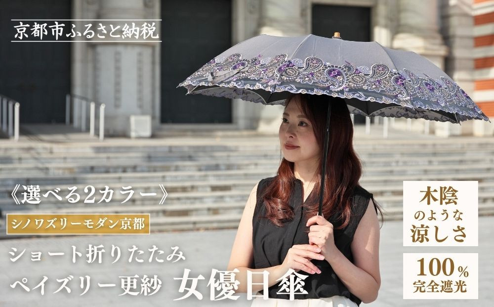 この自治体のポイントについてチョイス公式ポイント交換対象 刺繍技術の粋を集めた、繊細で優雅なペイズリー更紗柄の完全遮光日傘 【シノワズリーモダン京都】ペイズリー更紗オーガンジーカットワーク刺繍 かわず張りショート折りたたみ日傘(日傘,折りたたみ日傘,女優日傘)[ 京都 日傘 ブランド 女優日傘 完全遮光 晴雨兼用 おしゃれ 軽量 人気 おすすめ ギフト プレゼント お取り寄せ 通販 送料無料 ふるさと納税 ]