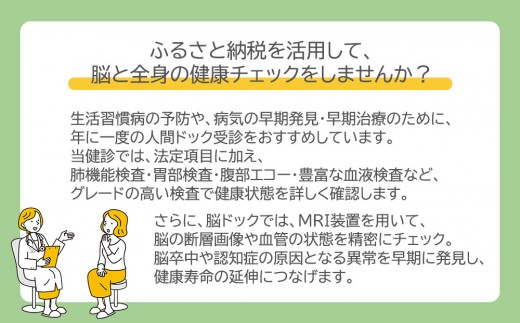 ふるさと納税を活用して、脳と全身の健康チェックをしませんか?ご本人様はもちろん、ご家族へのプレゼントとしてもご利用いただけます。