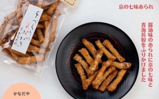 醤油味のあられに京の七味と青海苔粉をふりかけました。